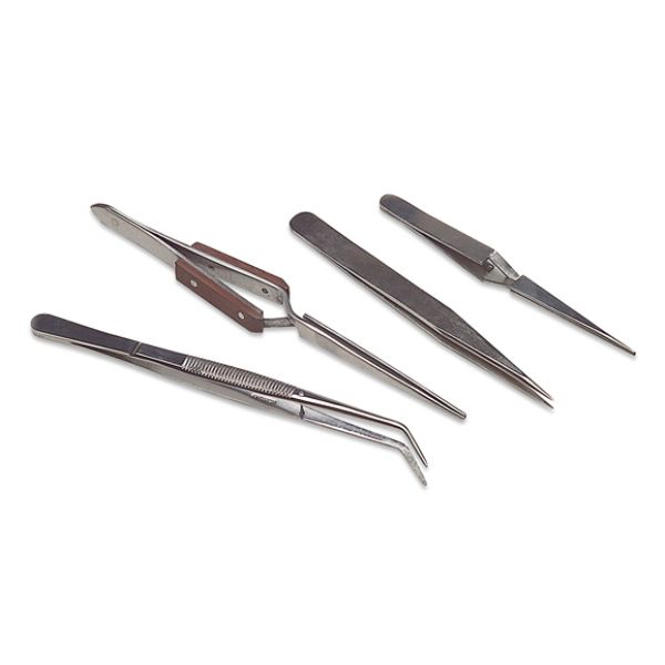 Four popular tweezers in a handy PVC pouch. Great for various jobs where ultimate precision is not required, particularly soldering. The set features the following styles: 4-3/4" general purpose, 6-1/2" insulated cross-locking, 6-1/2" bent nose and 4-1/2" cross-locking tweezer.