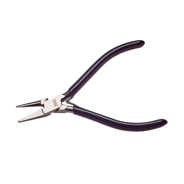 German-made bending plier essential for making smaller coils. Round jaw measuring 1.10mm at the tip combined with a flat jaw of 2.50mm at the tip, gives the user precise handling capabilities. Double-leaf return springs and comfortable PVC grips. Length 4-1/2" (115mm).