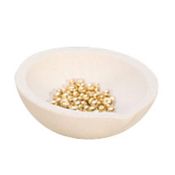 Shallow 1-3/4" ceramic melting dishes of fused silica for melting precious metals in temperatures up to 2,800 degrees Fahrenheit. Capacity 20 dwt (31 grams)