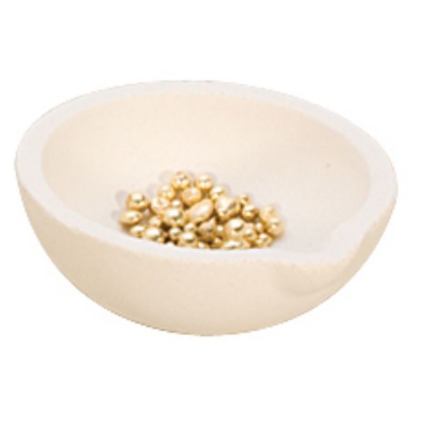 This shallow ceramic melting dish is made of fused silica for melting precious metals in temperatures up to 2,800 degrees Fahrenheit. Measures 2-1/4", 60mm x 17mm, and has a capacity of 40 dwt (62 grams).
