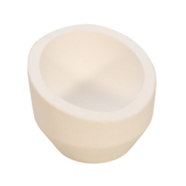 High back dish for melting and easy pouring of metals such as gold, silver, alloys, etc. Made of fused silica with clay bond. Use with a torch for melting points up to 2,500 degrees Fahrenheit. 77 by 63 millimeters