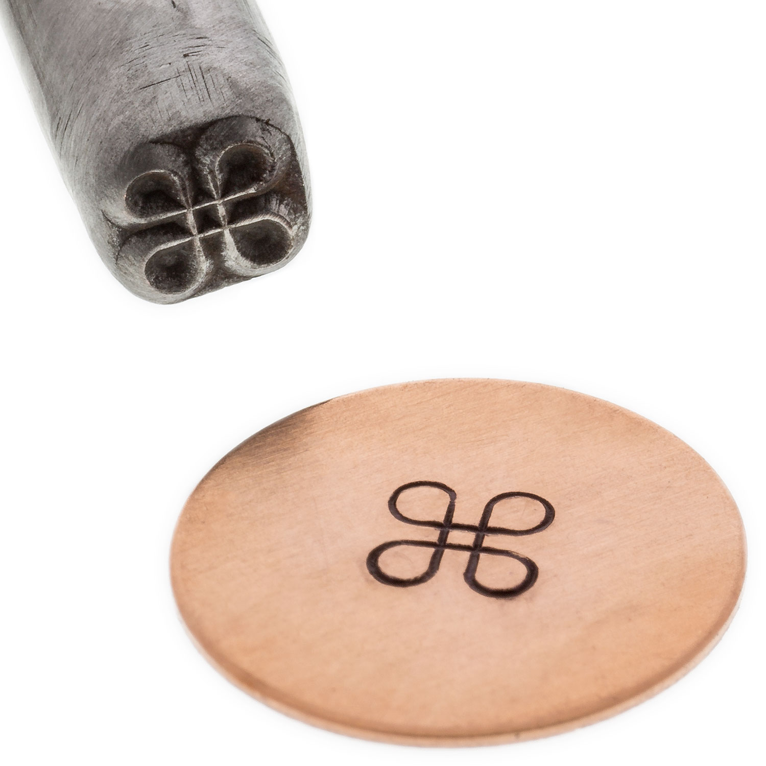 This decorative Bowen Knot stamp is made of hardened steel for decorating all types of jewelry items. Designs like these can add value and interest to silver, brass and other metals. Their usage also gives an artistic effect and enables the designer to personalize each piece. Features a round shank and is 3-1/4" long. When used properly, this stamp will last for years. Made in USA.