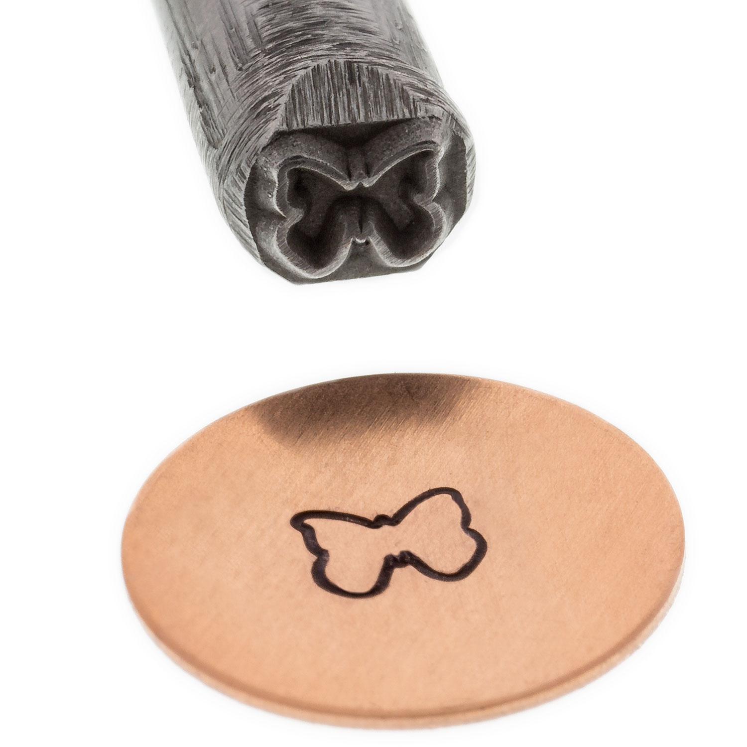 This decorative butterfly stamp is made of hardened steel for decorating all types of jewelry items. Designs like this add value and interest to silver, brass and other metals. Their usage also gives an artistic effect and enables the designer to personalize each piece. Features a round shank and is 3-1/4" long. When used properly, this stamp will last for years. Made in USA.