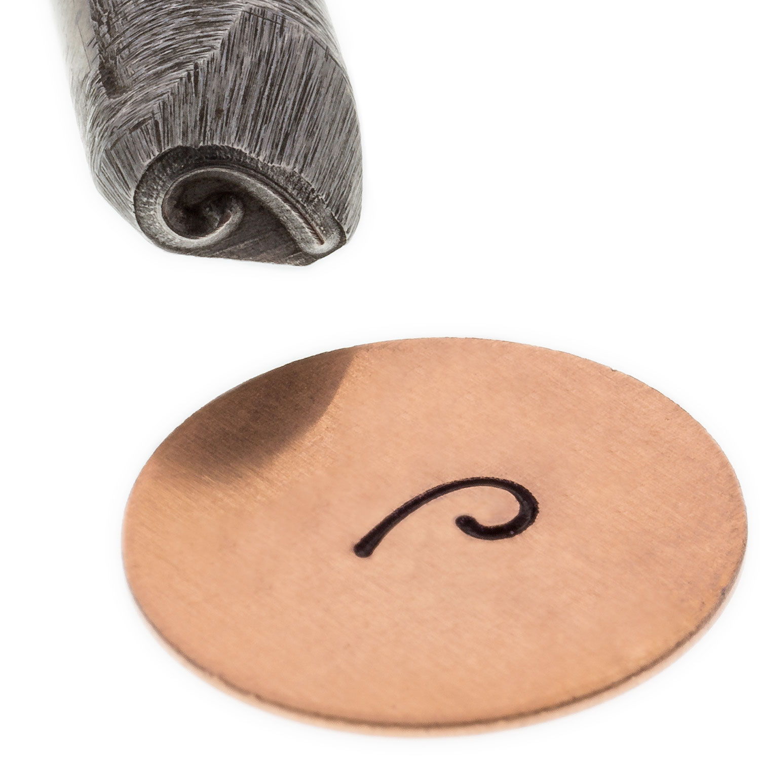 This decorative right curl stamp is made of hardened steel for decorating all types of jewelry items. Designs like these can add value and interest to silver, brass and other metals. Their usage also gives an artistic effect and enables the designer to personalize each piece. Features a round shank and is 3-1/4" long. When used properly, this stamp will last for years. Made in USA.