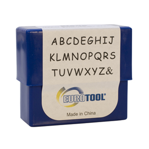 These metal stamps have a 3mm character and include 26 upper case letters and an "&" symbol in Siena font.