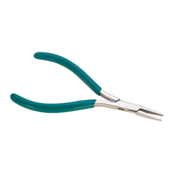 Made originally for the electronics trade this series of pliers gives the user precise surgeon-like control. Slim and ultra light Micro Mini Flat Nose pliers are outstanding for delicate jobs and are especially popular with the beading industry. They are 5" in length. Box-joint construction stainless steel and curved comfort-designed cushioned handles give these pliers an appeal that's hard to resist. They are only 3/16" x 1/8" at hinge pin.