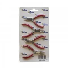 Especially handy for bead stringers on the go! Cute to look at, and extremely functional. Working head is constructed from the same size blanks as larger pliers. Four piece handy "Go Anywhere" set includes chain, flat, round, and sidecutter. Length 3".