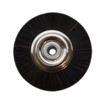 2" diameter lead metal-hub brush has black, stiff bristles and 1/8" hole. Made in England.