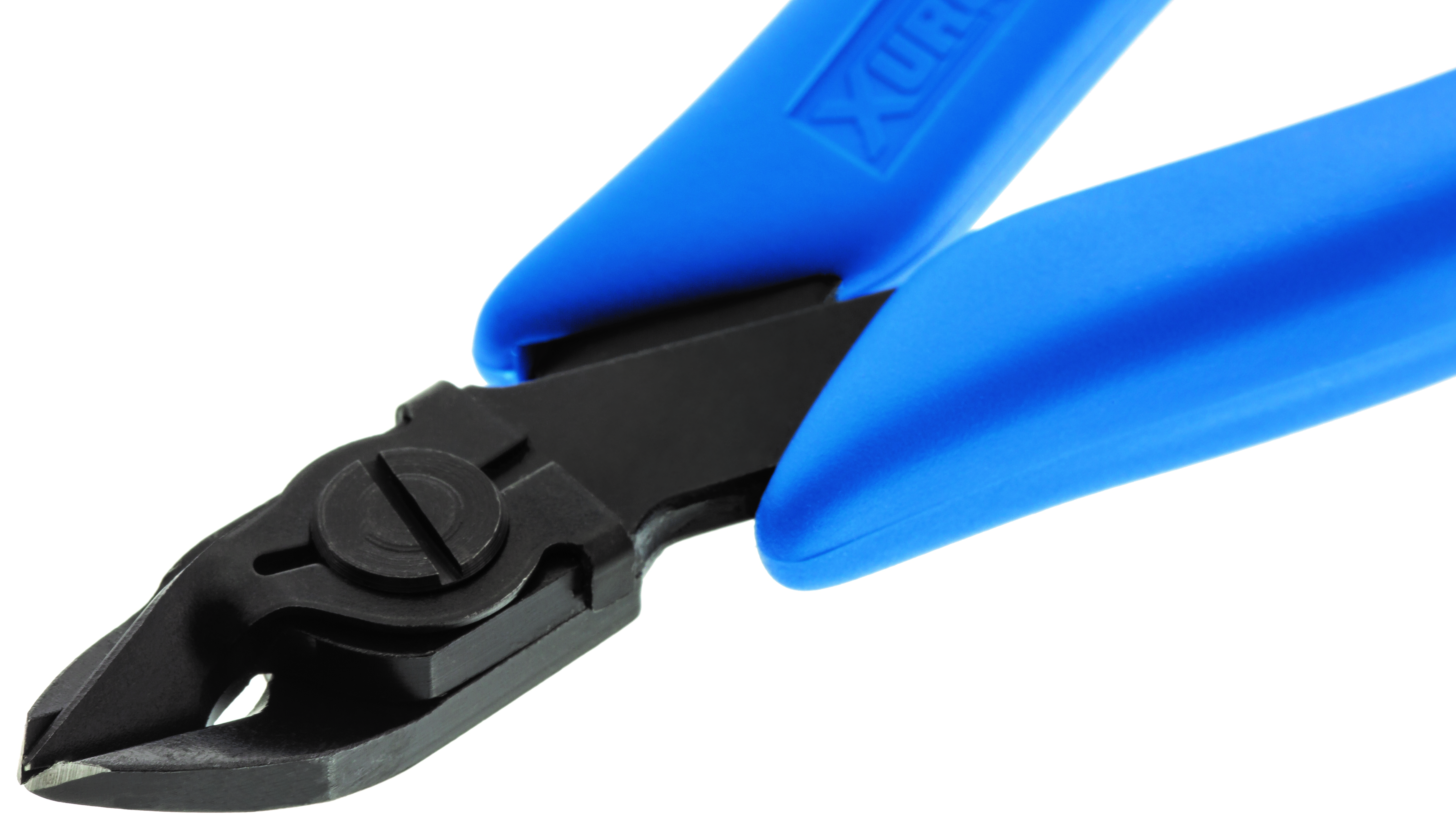 Xuron's Micro-Shear® flush cutter with oval shaped head and wire retaining clip lends itself perfectly to all types of wire work. This is a very strong, long-lasting cutter that will give you years of use. The wire retaining clip is a handy device that holds cut-off pieces of wire, allowing you to keep your workspace neater and easily reclaim your precious metal scraps (works best when cutting soft wire that is 18 gauge (1mm) or smaller. The handles on the Micro-Shear® are sized to be comfortable in a smaller hand, but still offer enough leverage for cutting soft wire up to 12 gauge (2mm).
