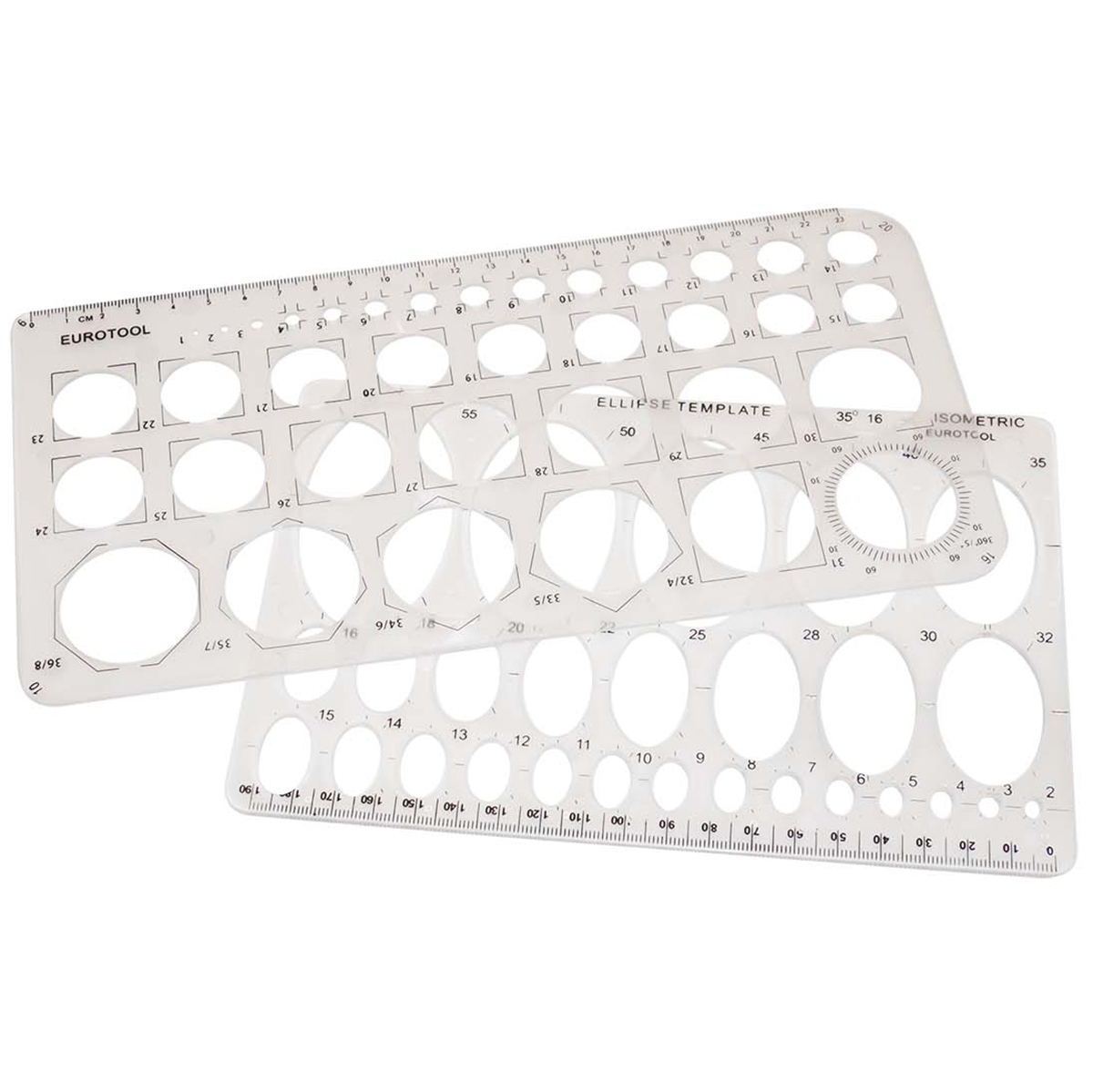Two piece template set has 36 circle templates from 1mm to 36mm, and 27 ovals from 2mm to 50mm. Ideal for metal working and other jewelry making applications.