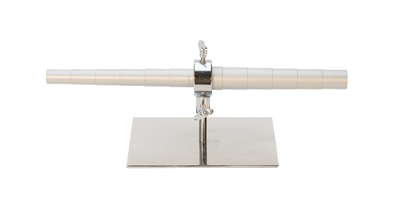 Revolving stepped aluminum mandrel on nickel-plated center base. Allows for a full 360 degree horizontal or vertical rotation. Ideal for wax model building or metal clay work. Smoothly and easily turn your piece as you work. Sizes 4-14 clearly marked on the stepped mandrel. Mandrel can easily be removed from stand for doing handheld detailed work. 6" x 4" base with a 12" mandrel.