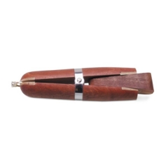 Made of mahogany for strength, feel and long life, this clamp also features a metal pivot and extra strong band. Best of all, jaws are lined with extra thick leather to hold rings better while filing, grinding and polishing. Jewelers will love the feel of this clamp, the quality is simply the best available. Length 6". Maximum opening 15mm.