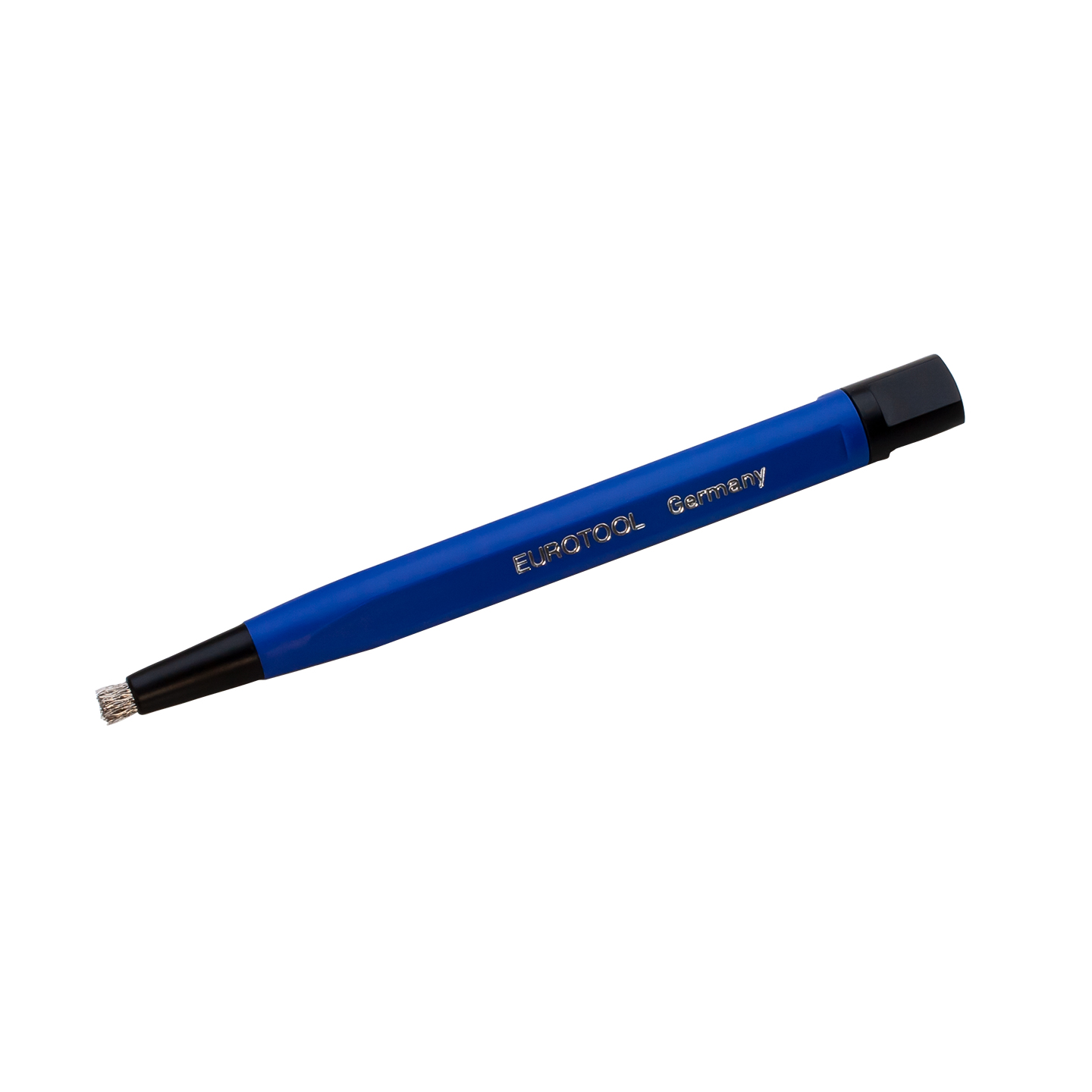 Our scratch brushes with pen-shaped handles are used for removing rust or corrosion in hard to reach places. Length is 4-1/2". Made in Germany. Colors vary.