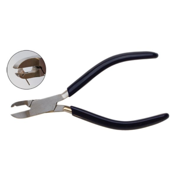 Another new idea to save time and assure that the job is done correctly. Pliers are shaped similar to other stone setting pliers, but one jaw is grooved and notched so that earring setting can be inserted as pictured. Gently squeeze and the prong folds over perfectly every time. Pliers are stainless steel and precision engineered to last a lifetime. Length 5-1/4" (135mm).