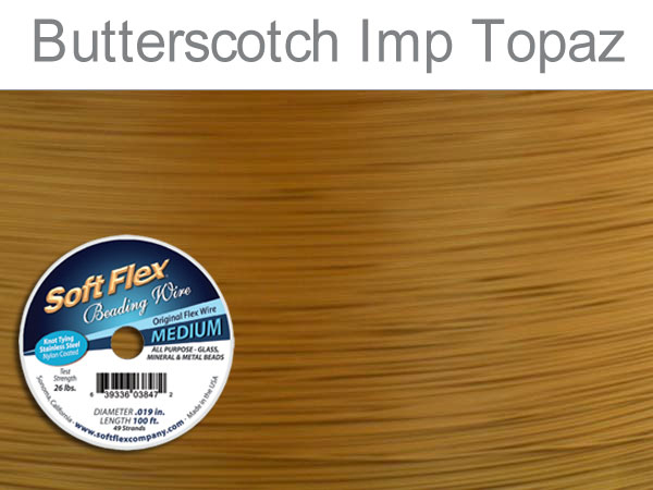 This butterscotch colored beading wire is the ultimate in nylon coated jewelry and beading wire. It is fast becoming the standard for professionals and hobbyists. Made up of 49 strands of stainless steel wire encased in nylon for the unbeatable combination of strength and flexibility. 0.019" in diameter (Medium); 100 feet.