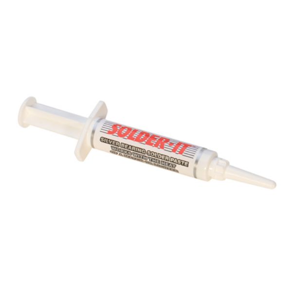 This low-temperature, silver bearing solder paste will speed up soldering tasks because it works with the heat of a match or lighter. It will join 22 different combinations of metals. This paste includes an easy-to-use, no-mess, no-waste syringe. 7.1 grams.