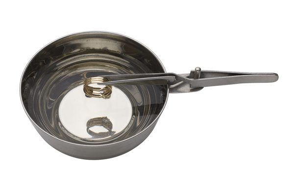 This JewelryTools Best Seller is a jeweler's dream for soldering rings when re-sizing. Just fill the cup with cold water and submerge the stone and mounting while soldering the shank to keep the stone cool. Simple, but effective. Soldering cup includes special sized negative locking tweezer designed to slip on and off the post. This is a tool for virtually every jeweler.