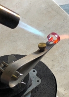 Caution! Don’t touch the grip, it will be hot!! The grip can be air cooled or, to speed up the procedure, pick up the whole assembly by the base and quench into a bowl of cold water. Then loosen the grip, remove and finish as usual.