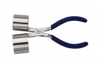 Miland Double Cylinder Ring Pliers have two different sized cylinders which are used to quickly put large radius curves into flat metal stock. Result can easily be resized on mandrel if desired. Perfect for making mens' and womens' bracelets. Pliers are 6 inches in length.