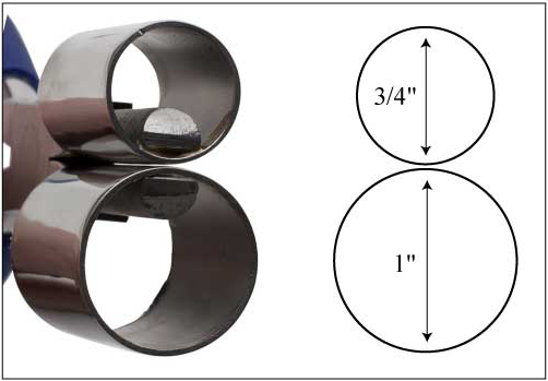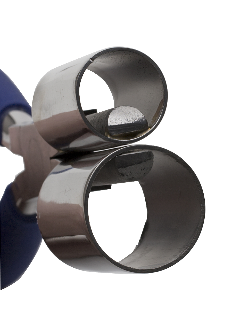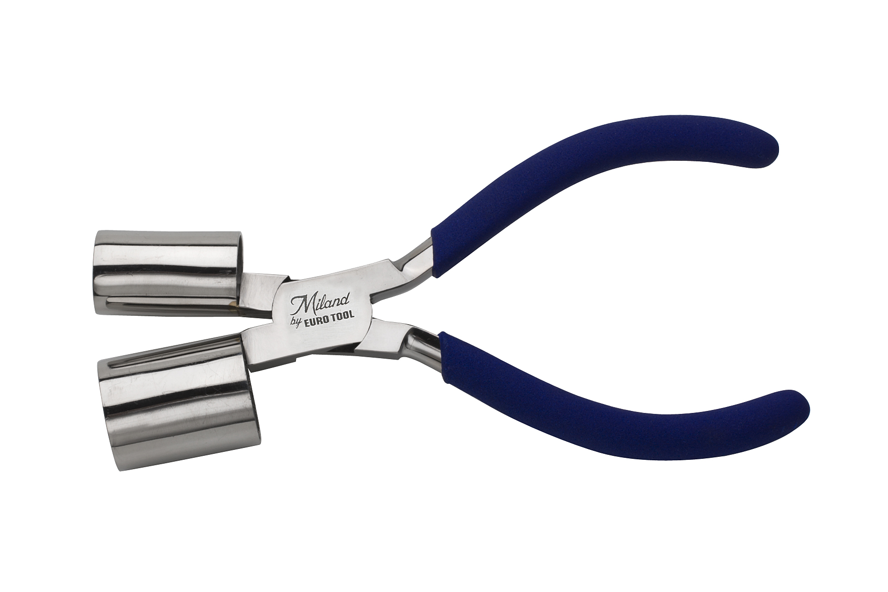 Miland Double Cylinder Ring Pliers have two different sized cylinders which are used to quickly put large radius curves into flat metal stock. Result can easily be resized on mandrel if desired. Perfect for making mens' and womens' bracelets. Pliers are 6 inches in length.