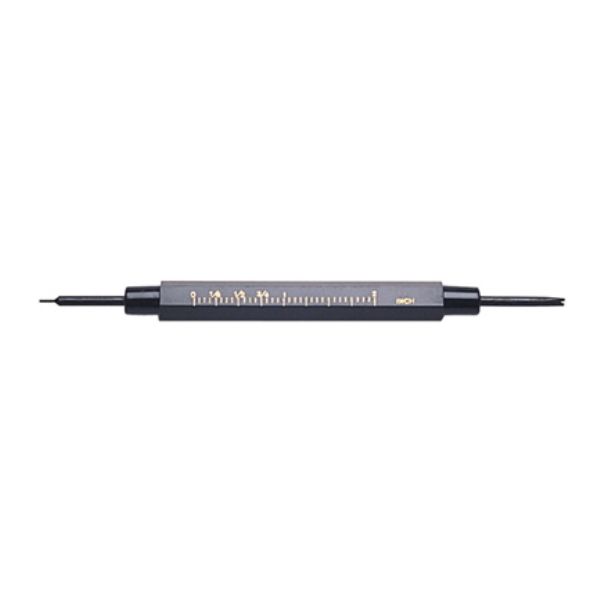 To change spring bars, use this tool with tempered tips which are interchangeable with the famous Swiss model, but at less cost. The tool features a millimeter/inch scale on the handle that measures up to 2". Length 5".