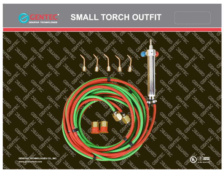 This small torch basic kit contains The Small Torch handle, five tips (#3, 4, 5, 6 and 7) and 12 oxygen and fuel hoses with "B" fittings (9/16") and "A" fittings (3/8") adapter.