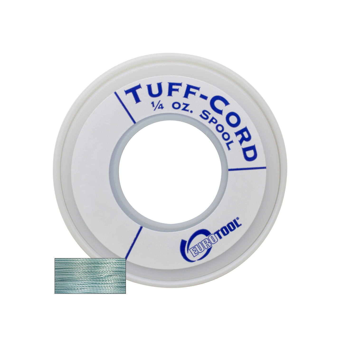 The best quality American-made beading cord available. Synthetic nylon fibers are stronger as they are made of three strands of long fiber, not just two. Will not stretch or stain and resist fraying and shredding. Tuff Cord can be used without a needle! Turquoise, Size 3, 49 Yards