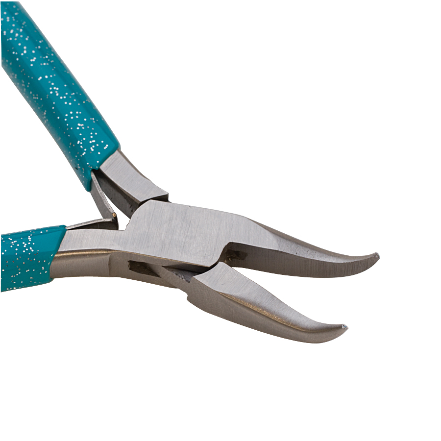 These Glitter Line pliers will add personality and fun to your toolbox. They are ideal for jewelry work such as wire wrap, beading and more. These bent nose pliers are made of stainless steel with double leaf springs and feature PVC turquoise glitter grips. The fine tips are precision ground. These pliers are 4-1/2" (115mm) long.