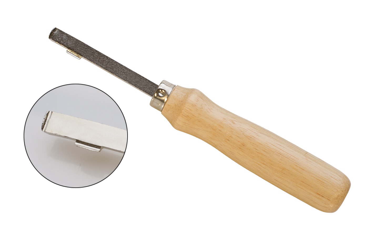 This knife features a blade on the side for opening friction-fit cases. Simply give the handle a twist and the case back will easily open. Total length 5-3/4".