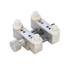 This movement holder was made for pocket and large watches popular today. Well-made solid metal holder fits in any bench vise. Four adjustable pins made of non-marring nylon can be set in four positions to accommodate any style and shape. Easily adjust with large knurled knob. Weighs 0.72 pounds.