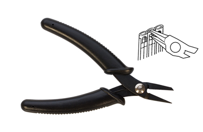 An essential tool for adjusting the length of expandable watch bands. The flat jaw rests atop the link, and the pointed tip fits under the clip spring. By gently squeezing, the clip spring pops up and can be easily removed to allow for sizing. Length 5-1/2".