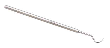 Great for scribing, positioning, probing wax and much more. Made of stainless steel with knurled handles. Includes one pick, hook shaped, 5-1/2" long.