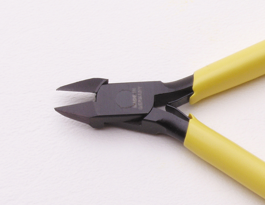 Our 4-1/2" (115mm) German cutter specifically designed for multi-strand beading wire is full-flush with jaws induction hardened to 60-62 Rockwell. Used properly this degree of hardness assures a clean cut, time after time. Cutting edges are precisely aligned and the black oxide non-glare head has "relieved" design for reaching into tight areas. This quality German cutter also features double-leaf springs and yellow PVC handles. Use on flexible beading wire and soft wire only.