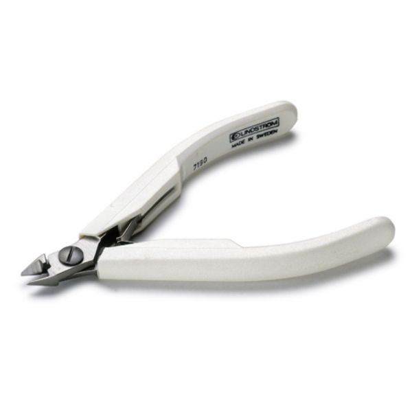 Our Lindstrom Supreme Cutters are a craftsman's favorite. These tapered head cutters with a micro-bevel jaw are excellent performing cutters. They have specially forged box joints with extra long contact surfaces for greater precision and longer life. These cutters are made with double-leaf springs and high-impact cushion grips. They are 109mm (4.29") long with a jaw that is 9mm (.35") long and a maximum cutting capacity of 16 gauge (1.25mm, .05").