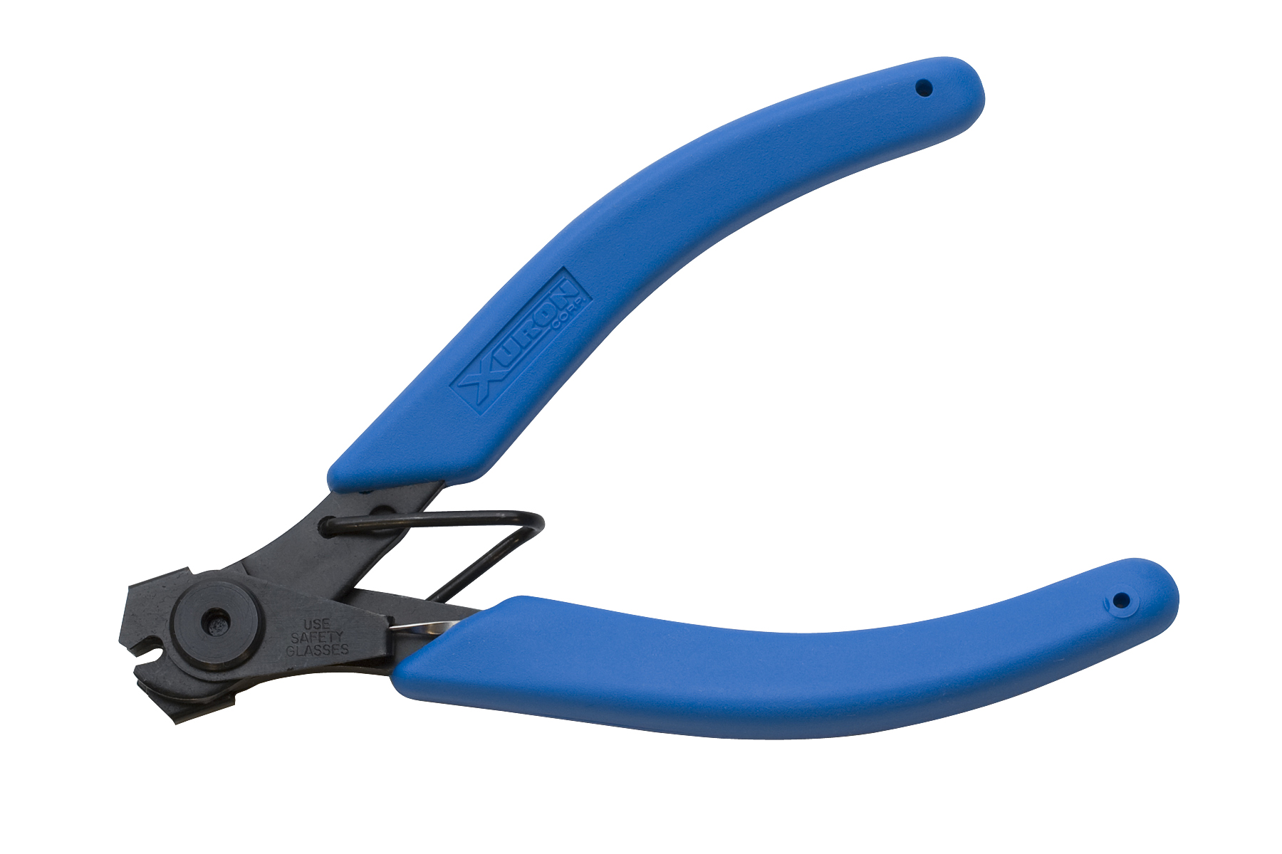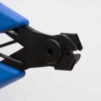 This hard wire cutter has a self-adjusting clamping fixture which holds the wire perpendicular to the jaws. Simplifies the cutting process while allowing for flat cuts on both the cut and cut-off sides of the wire. Designed for cutting memory wire, silver, gold and copper wire up to 14 gauge. Length 5-1/4 inches (135mm).