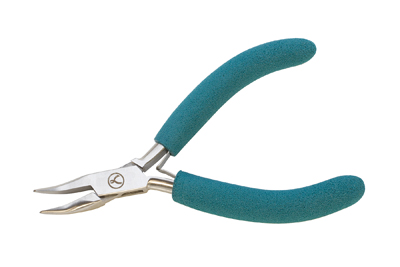 EURO TOOL's Baby Wubbers Bent Nose Pliers are perfect when working on jewelry crafts because the fine tips are useful for working in tighter, hard-to-reach spots or when working with lighter gauge wire. Wubbers are made with cushioned, turquoise handles that fit perfectly in your hand. They provide great leverage without the added bulk and feature smooth-action springs. These pliers can handle 18 to 30 gauge wire. 5" long with 24mm long jaws and a 1.0mm wide jaw tip.